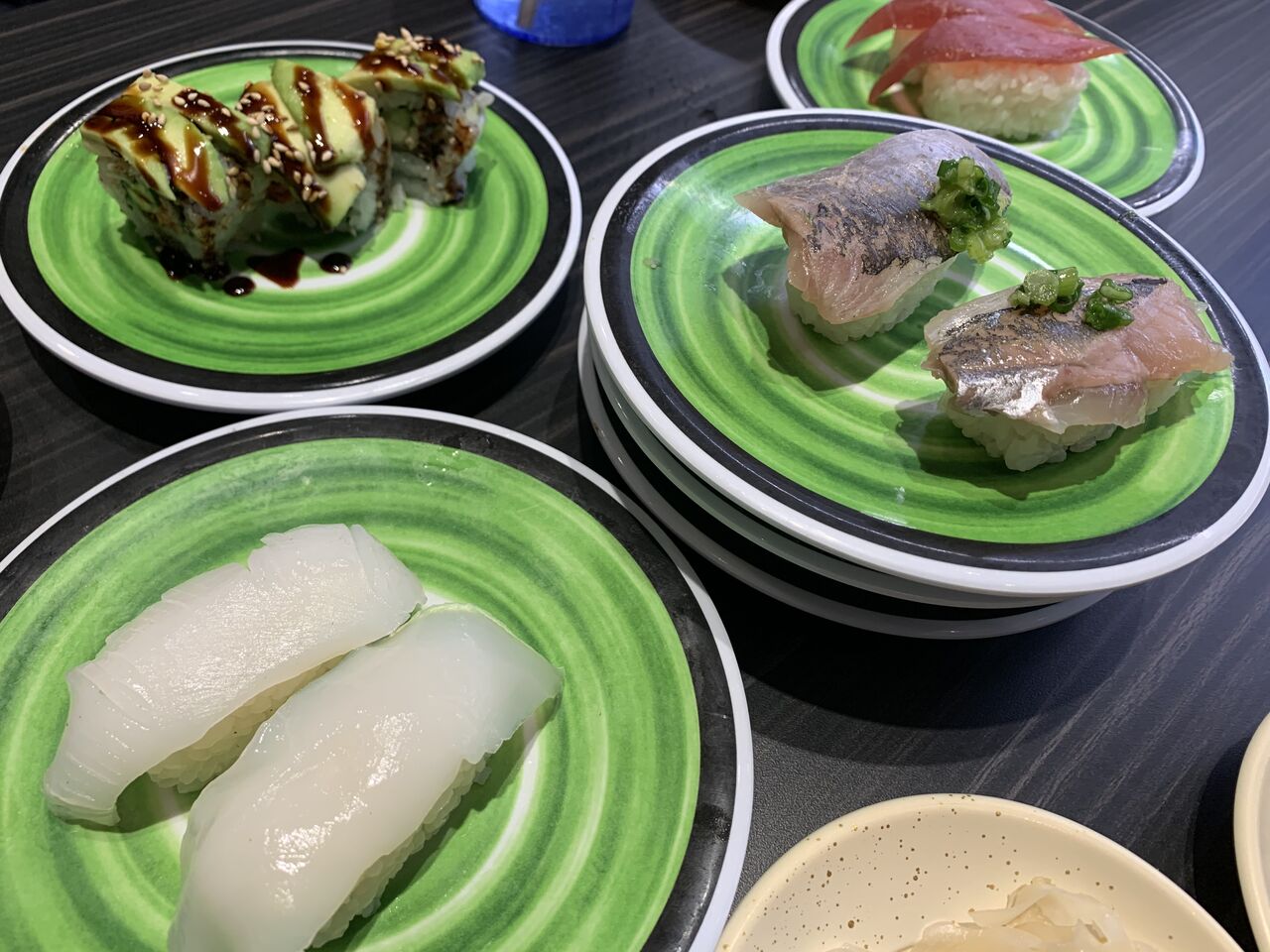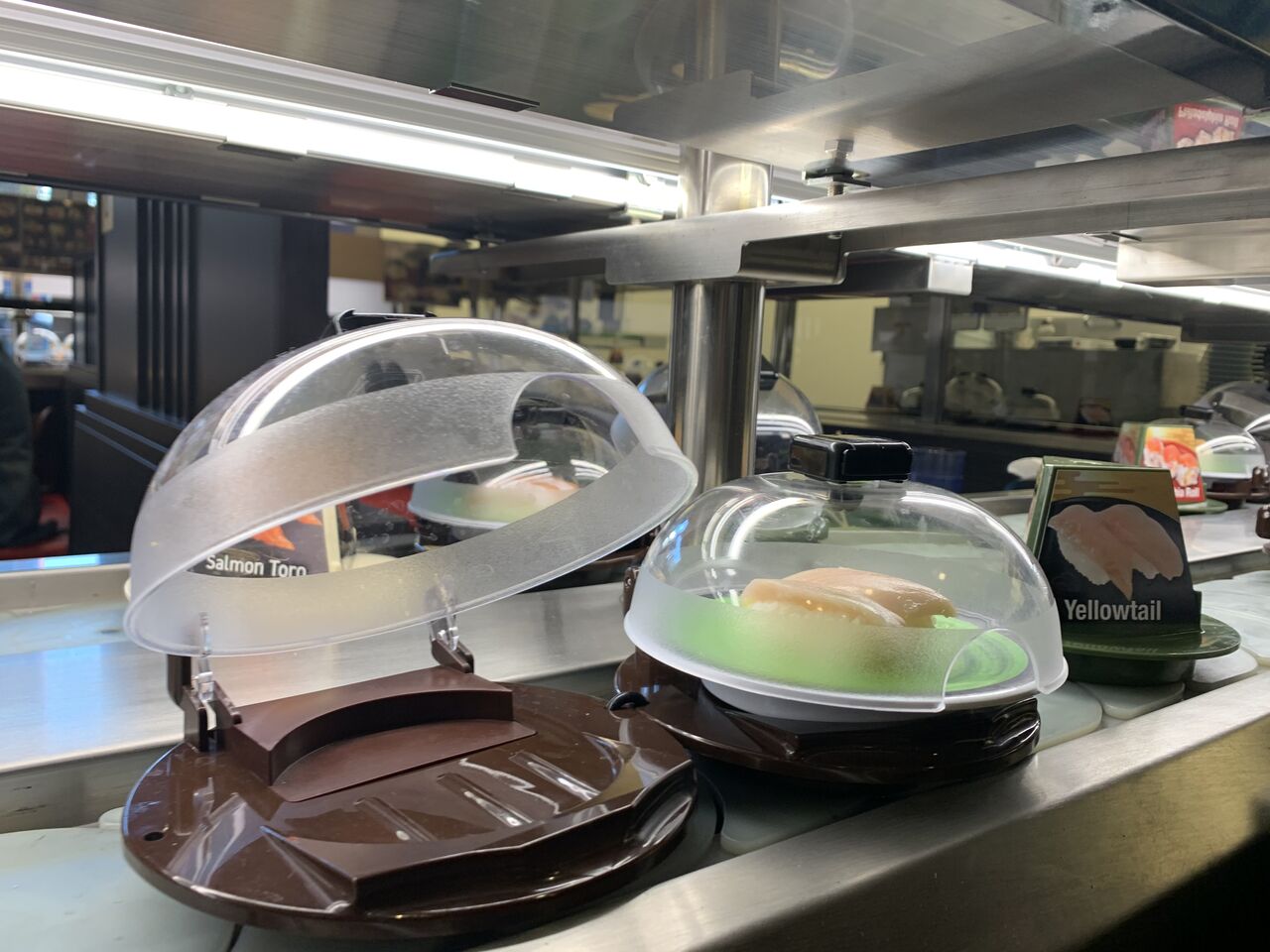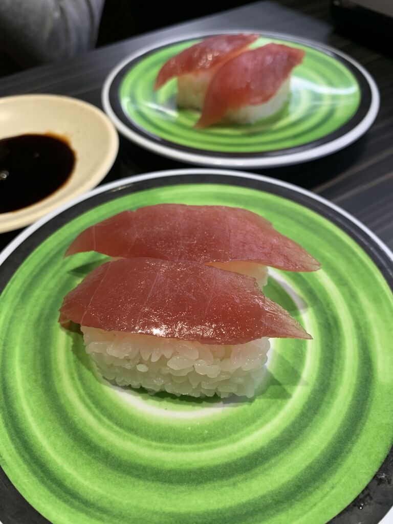 回っている寿司はこんな感じ。日本もそうですが、これ開けるの難しくない??