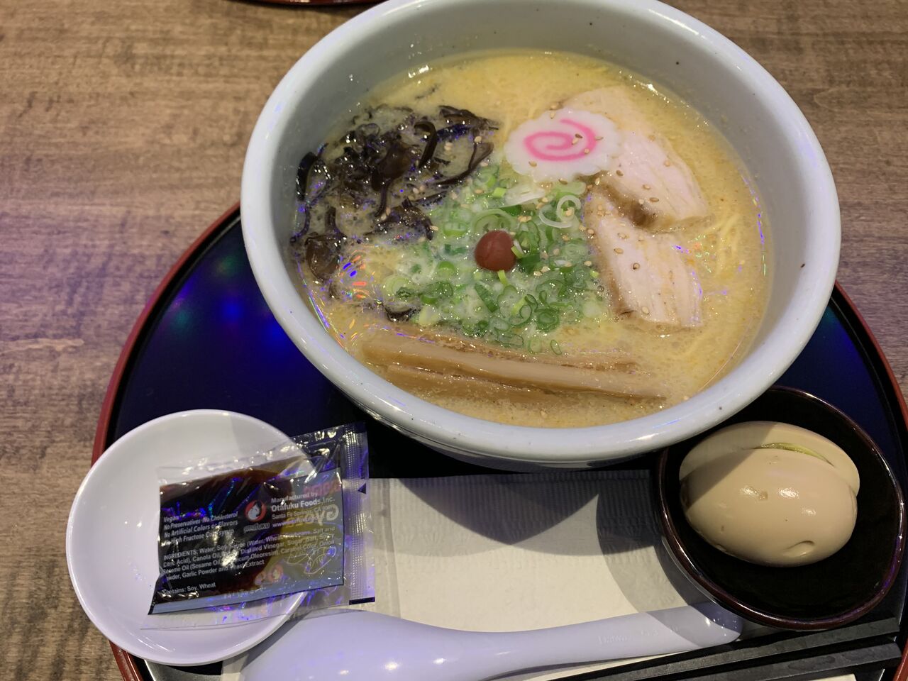 ラーメンは豚骨がベースでございまして、きりっとキレのある味でございます。米国では正直パチモンのようなラーメンも少なくない中、これは間違いございません。うましうまし。
